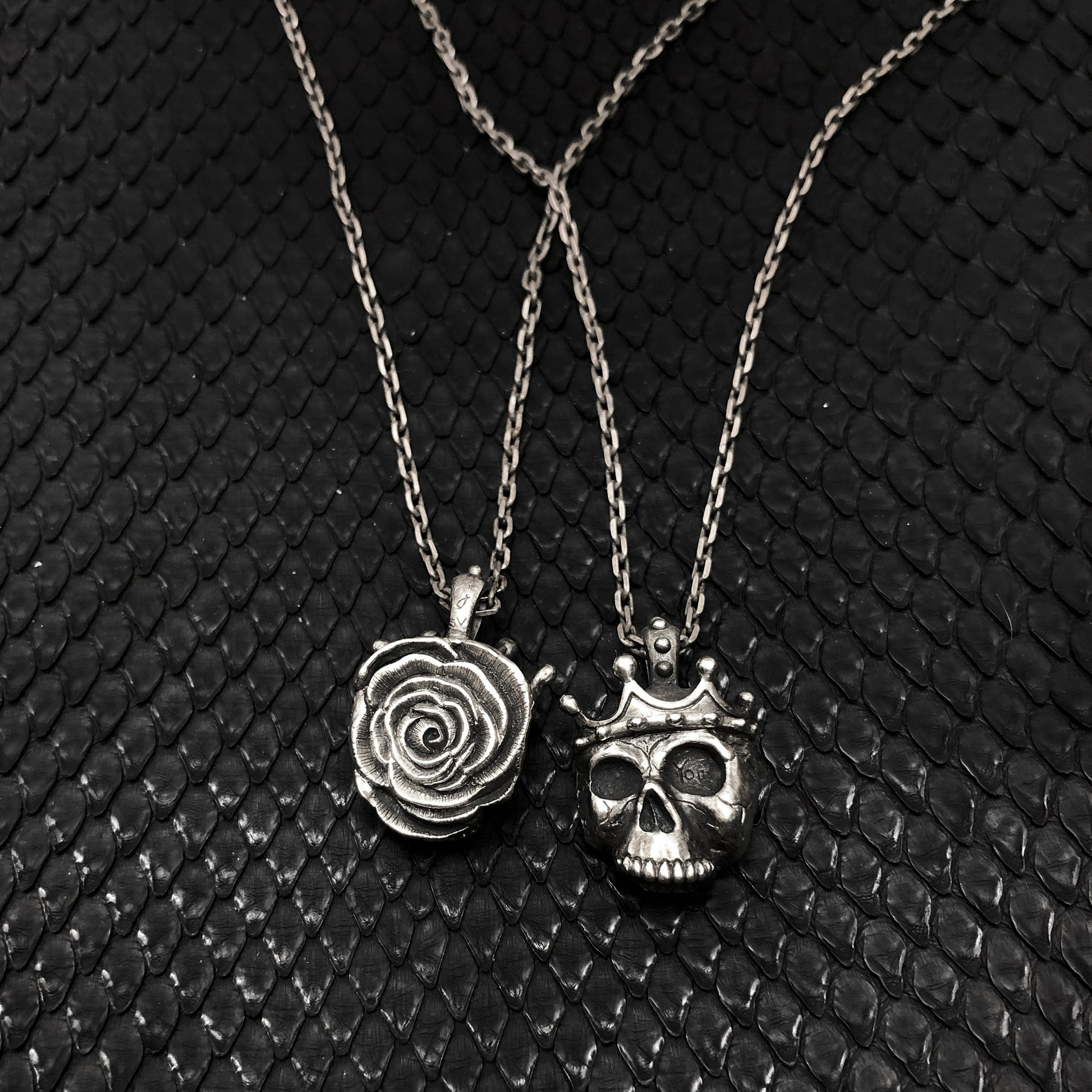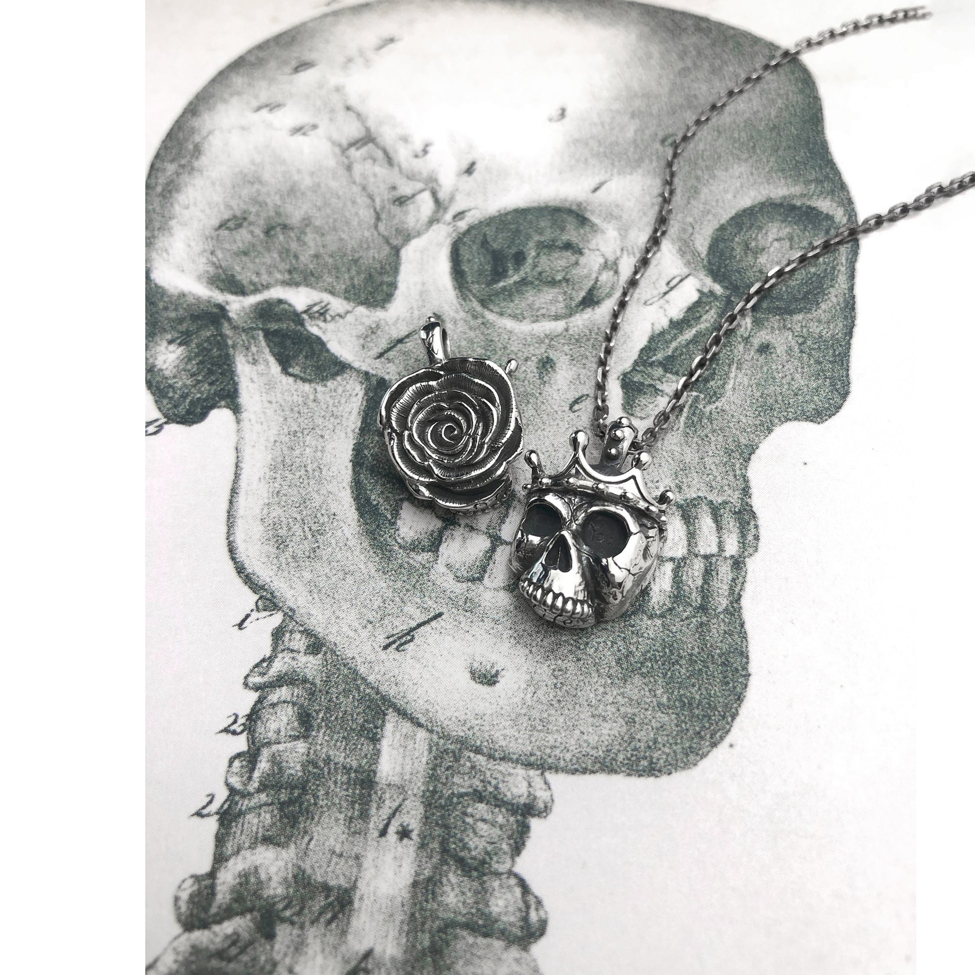 The King Skull and Rose Pendant Siver 925